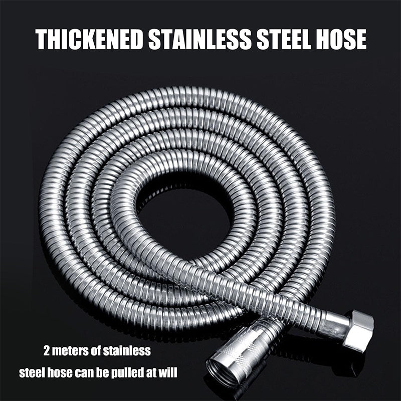 2-meter stainless steel hose: The Charging Integrated Outdoor Electric Shower comes equipped with a thickened 2-meter stainless steel hose, providing durability and flexibility for a wide range of uses. This long, sturdy hose can be easily pulled and adjusted to suit your needs, whether you're camping, washing your pets, or cleaning your car. The corrosion-resistant stainless steel ensures a long lifespan, while the extended length gives you the freedom to move around and reach areas without restrictions.
