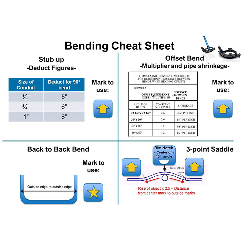 Versatile Compatibility: Suitable for bending 1" EMT (Electrical Metallic Tubing) and 3/4" rigid conduit, making it ideal for various electrical projects.