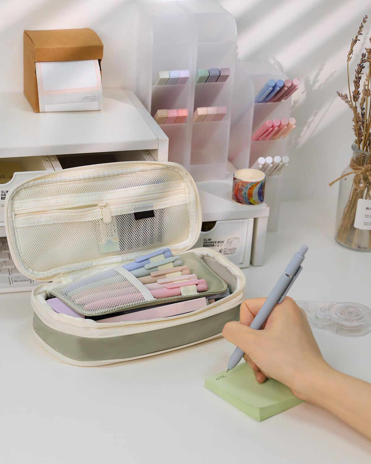 Large Capacity: Pencil case size 8.7 x 4.1 x 2.6 inches with large capacity storage, can store up to up to 50 pens or 90 pencils, and can store small stationery in the mesh bag.