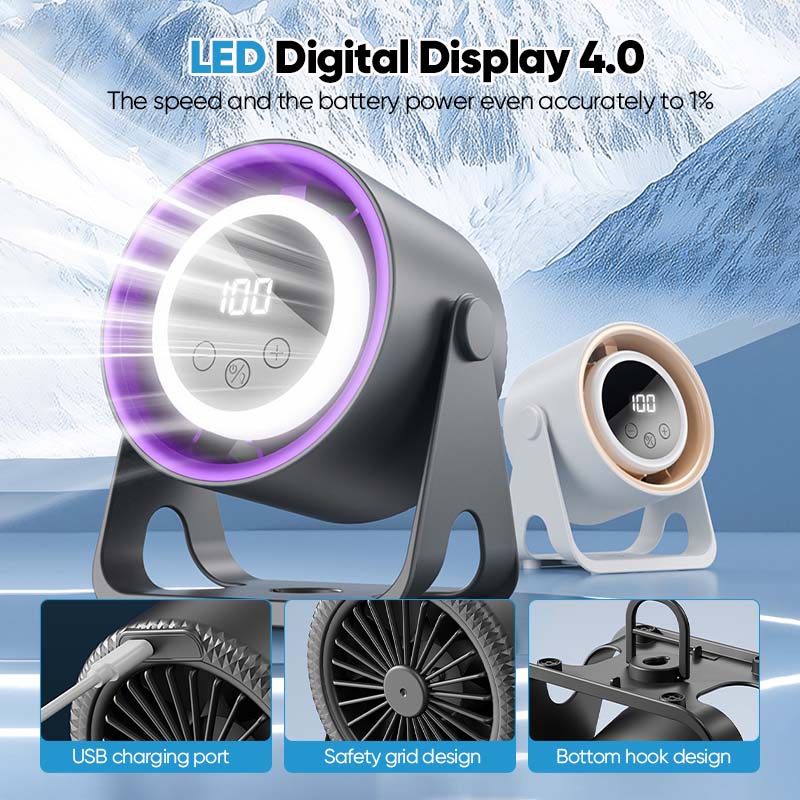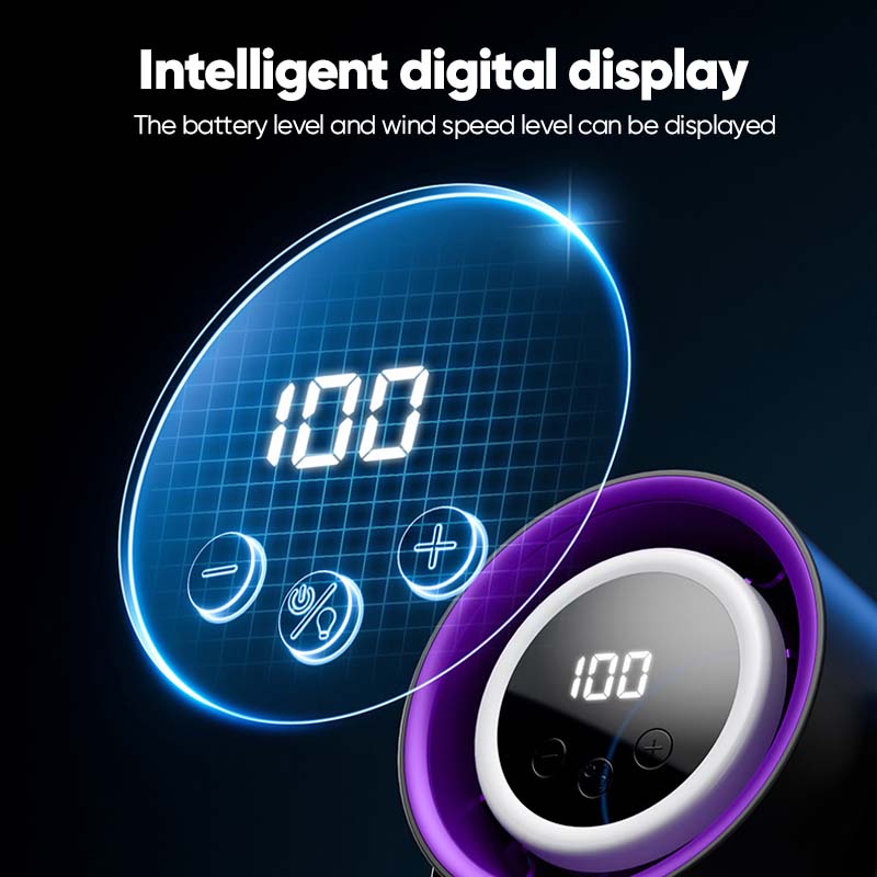 Intelligent digital display: Stay informed with the intelligent digital display that shows both the battery level and wind speed level. This fan makes it easy to monitor your fan's performance at a glance, so you always know when it’s time to recharge or adjust the speed.