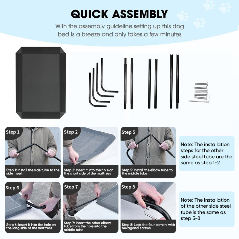 Cooling comfort design: Off-ground structure promotes air circulation to keep dogs dry and cool in any season.