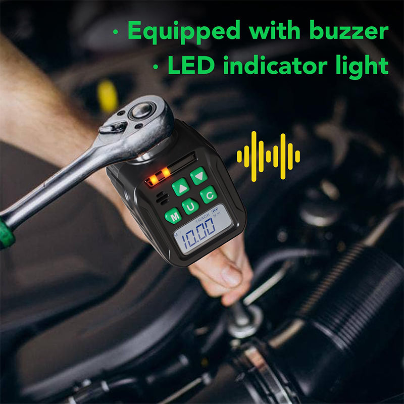 LED lights and bee tweets: This torque wrench adapter has a sensitive alarm system. When you set a certain torque value and start force, the torque wrench adapter will issue a warning before achieving the target value, and remind you that you will reach the target value Essence The beeuris will make a beep, and the LED light will change from green to red.