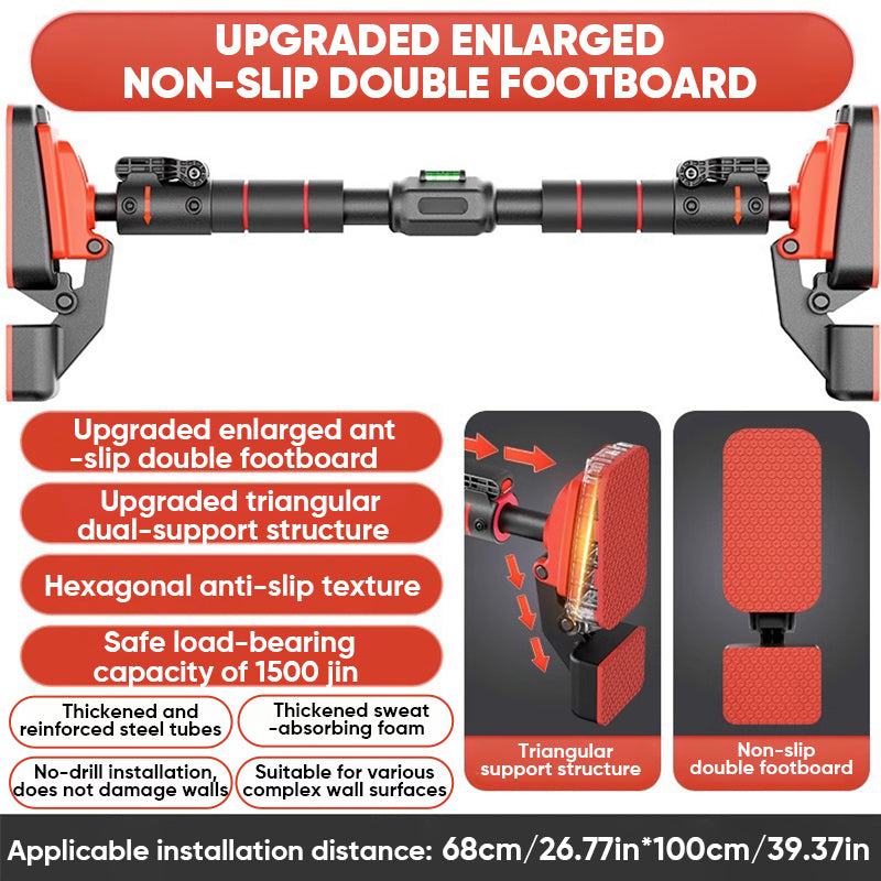 Scientifically Designed for Safety: Features dual support foot boards that require no additional fixing equipment; a special three-bearing transmission structure that becomes firmer as the load increases; a dead suspension bar with an independent locking key and buckle to ensure the steel pipe does not slide due to rotation; and a level gauge to assist with correct horizontal installation, maximizing the effectiveness of the hanging exercise bar.