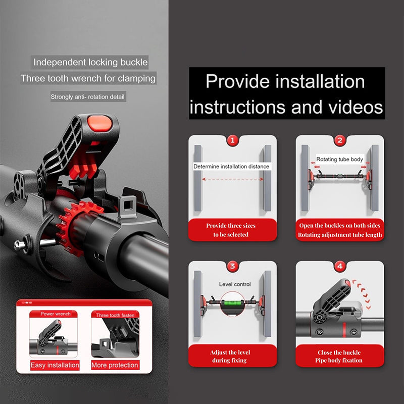 Simple Installation: The horizontal bar can be installed without tools, drilling, damage, or screws. Simply rotate the steel pipes according to the labels to adjust the pull-up bar’s length, and it can be firmly mounted on the wall. It is easy to install, disassemble, and portable. (If the pull-up bar is intended for babies, children, or kids under 12, it must be used under adult supervision.)