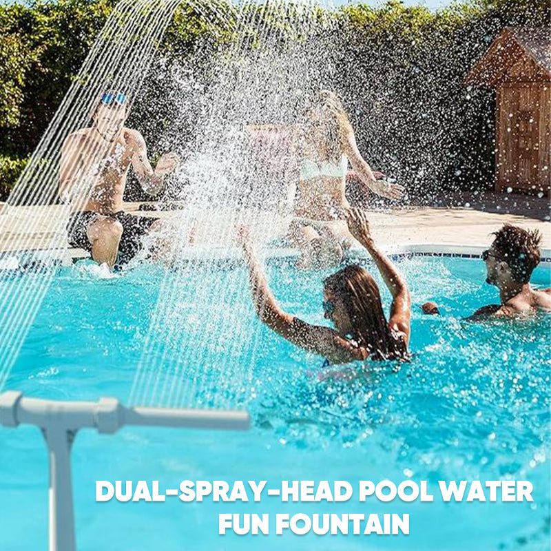 • Dual-spray-head pool fountain: This waterfall pool fountain spray use of double-headed above-ground pool fountains, splashing double water volume into the air, Creating a waterfall splash in your pool, and creating a nice sound. More interesting than the single-spray one, with more water spraying, and a longer spraying distance.
