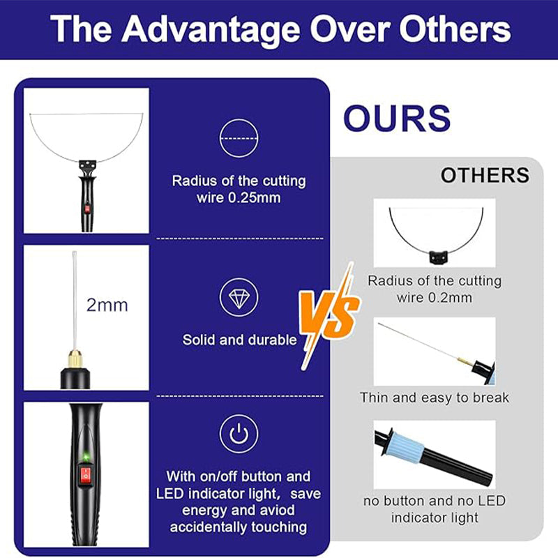 Clean-and-smooth cutting: This heated styrofoam cutter heats up quickly, allowing for smooth and fast cutting of styrofoam. It seals the edges cleanly with no debris. You can cut foam boards or blocks from any angle and craft them into your desired shape. The different wand lengths can cut various thicknesses of foam boards.