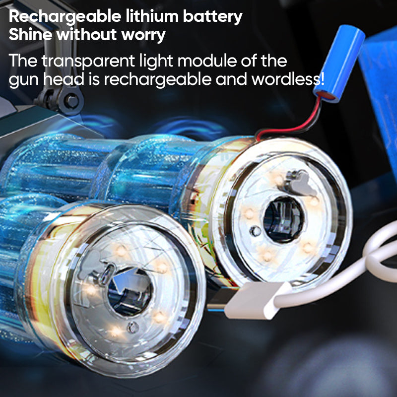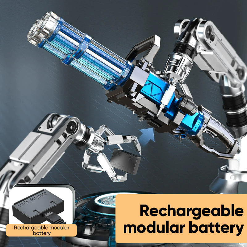 - Continuous electric firing feature: Equipped with a high-speed electric motor, enabling single-shot/continuous firing mode switching to simulate the rapid-fire experience of a real Gatling gun. Optimized water pump and intelligent chip control ensure consistent water stream propulsion and high-impact spraying.