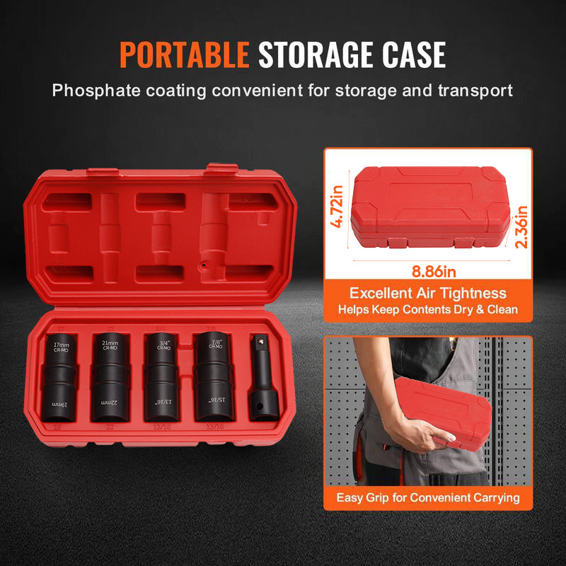 Portable storage case: All lug nut sockets are organized in a convenient storage case for easy access and portability. The airtight case helps keep your tools dry and clean, making it easy to carry.