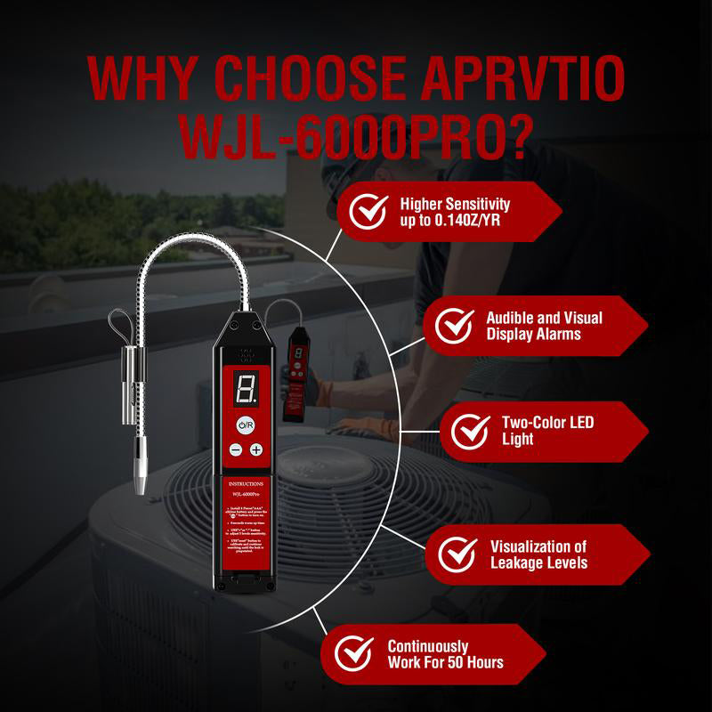 Upgraded version of WJL-6000: The WJL-6000Pro halogen leak detector is the upgraded version of the classic WJL-6000 with higher sensitivity. The new upgraded LCD screen displays sensitivity level and refrigerant gas leakage level, even with multiple alarm functions.