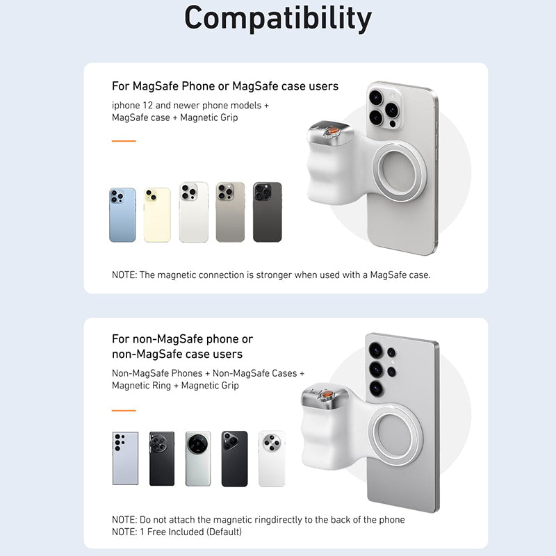 Widely compatibility: Phone camera grip widely compatible with iPhone and Android phones, for iPhone 16/16 Pro/16 Pro Max/16 Plus/iPhone 15/15 Pro/15 Pro Max/15 Plus/14/14 Plus/ 14 Pro/14 Pro Max/13/13 Pro Max/12/12 Pro Max/11/11 Pro/11 Pro Max/X/XS/XR/ XS Max/8 plus, Samsung Galaxy S22/S21/S10/10+ /S9/S9+/S8/S8+/S7/S6/S6 edge, HUAWEI, Xiaomi etc