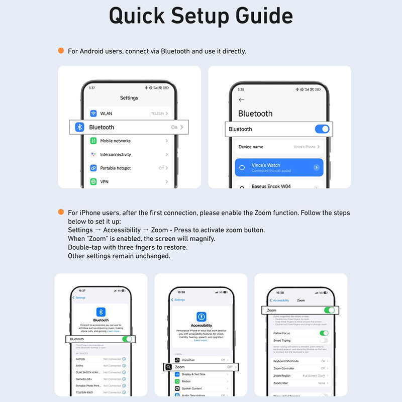 Detachable wireless remote control: Equipped with a detachable 10m/32.8ft wireless remote control, compatible with iOS and Android systems, it integrates perfectly with your phone's camera app via mobile Bluetooth connection. Easily connect to your smartphone without downloading apps