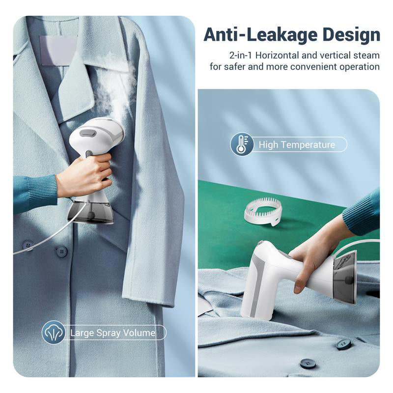 2X faster wrinkle removal: Our 1500W clothes steamer heats up in just 20 seconds, offering 2X faster wrinkle removal. It quickly smooths wrinkles, leaving your garments crisp and odor-free, making it perfect for efficient, on-the-go styling.