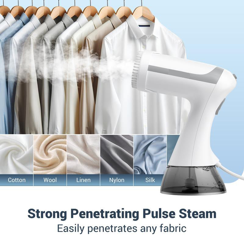Extended cord & portability: With a 6.56-foot power cord, this handheld garment steamer offers maximum flexibility and easy movement. Its compact, detachable design makes it ideal for both home use and travel, ensuring convenience and portability wherever you go.