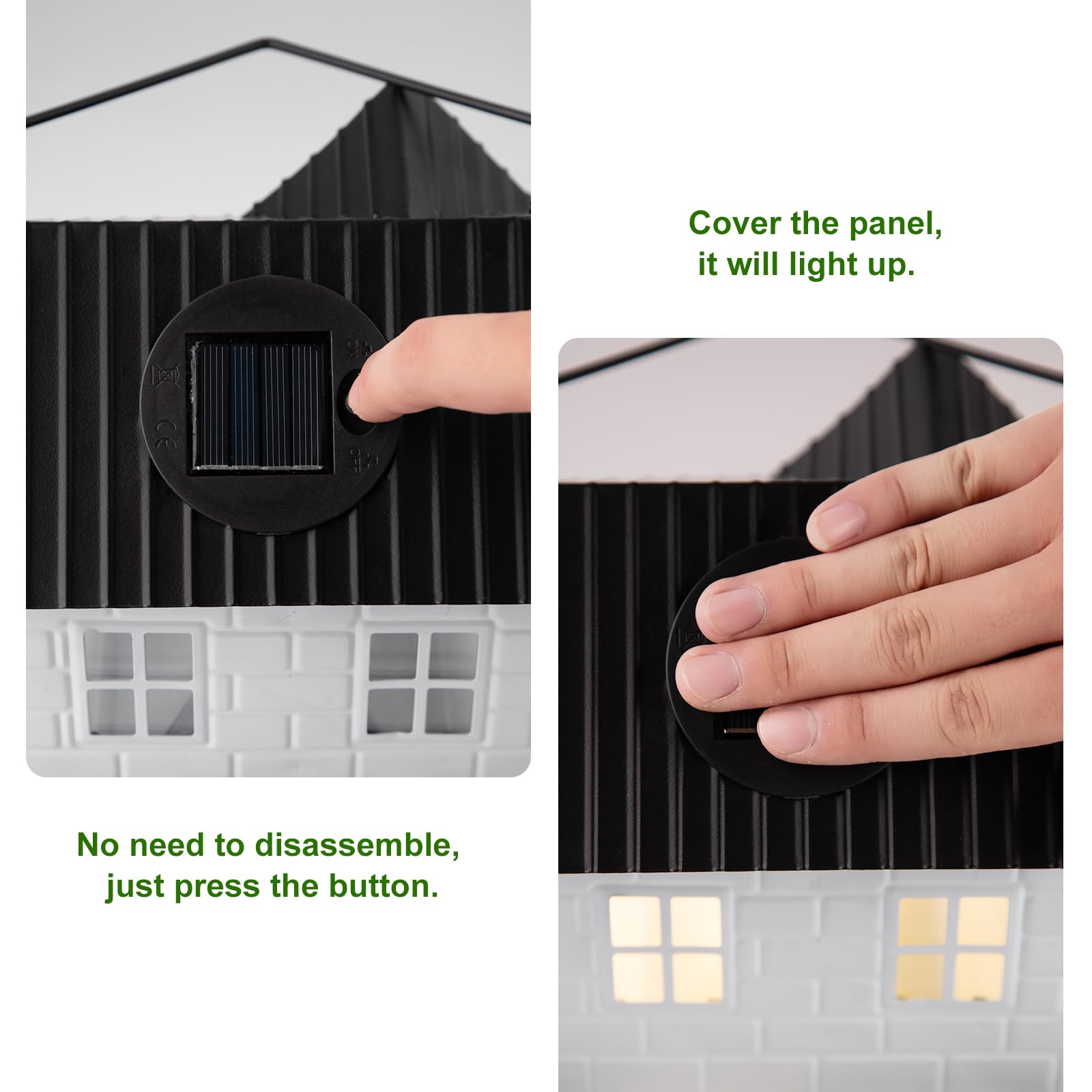 Solar-powered lighting: Integrated solar panel charges during the day and automatically powers an LED light at night, creating a cozy nighttime foraging spot.