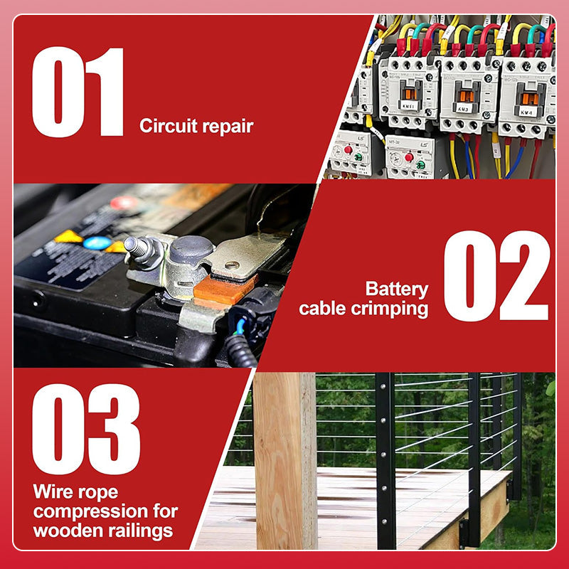 Ideal for multiple applications: Perfect for crimping battery welding cables, power wires, electrical cables, and cable railing systems. Whether you're working on a deck project or an automotive task, this tool delivers professional results with minimal effort.