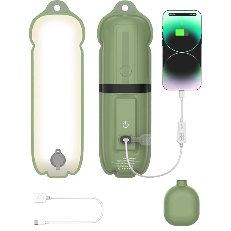 Power bank: It can serve as a power bank for smartphone or mobile devices in emergency. Can be hung or magnetic suction. This tent light can be hung from tents, branches, or attached to metal objects such as vehicle trunks, RV bodies, etc. with magnetic tabs, and are very easy to carry around.