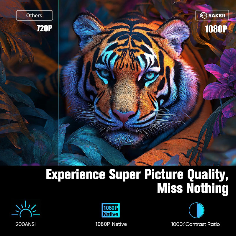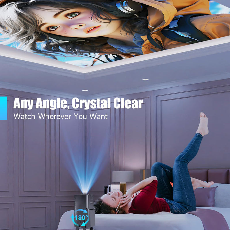 Any angle, crystal clear: Featuring 180° rotation and a 1000:1 contrast ratio, this projector offers a flawless viewing experience from every angle. It also supports Bluetooth 5.2, 2.4/5G connectivity, and 200 ANSI lumens, making it perfect for both gaming and movies.