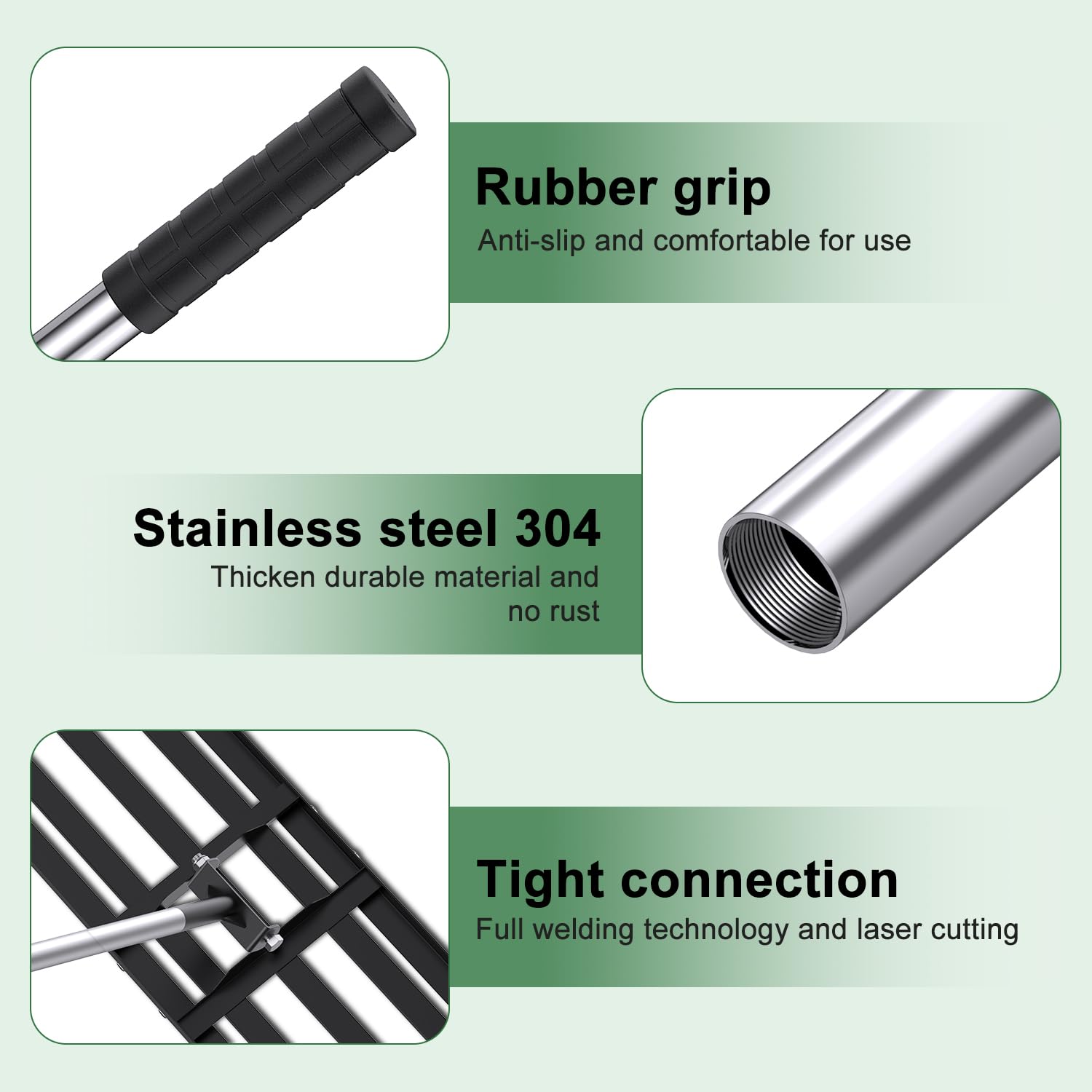 【Easy to install & storage】Connect the rake first with screws and assemble handle one by one to complete the overall installation, having you ready to work in seconds. Designed with convenience and ease, our rake is a prefect solution for homeowners and professionals.