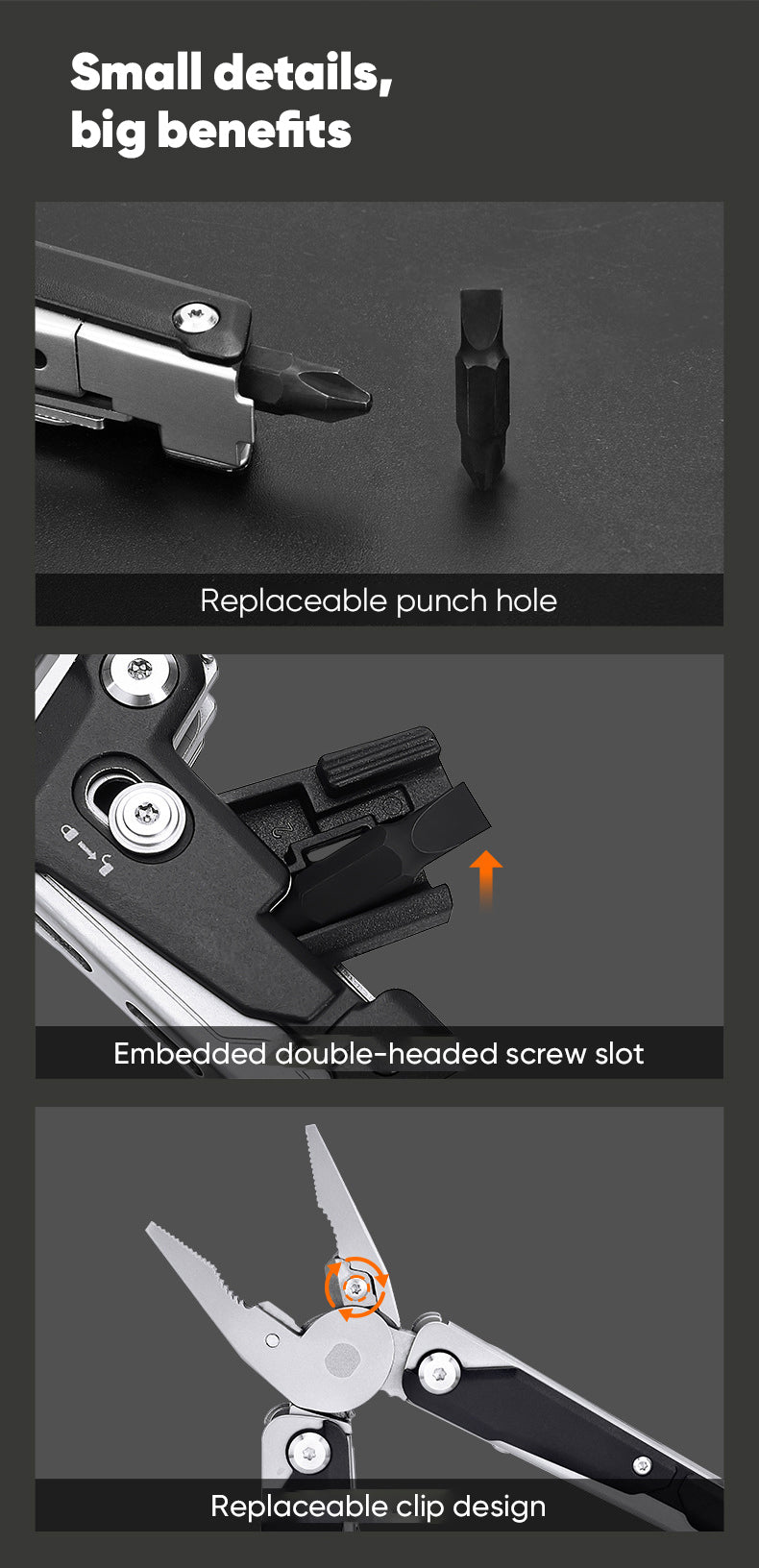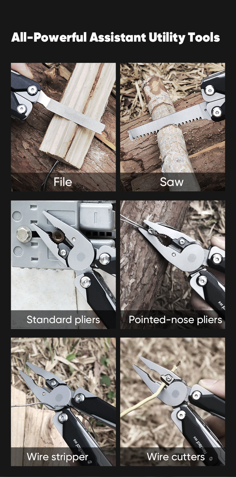 High-strength material: Made of premium stainless steel with fine polishing, this multi-tool delivers excellent corrosion resistance and superior durability. It can handle demanding workloads without bending or rusting, maintaining long-term reliability even in humid or harsh environments. Whether you’re tightening bolts, cutting rope, or fixing equipment, this sturdy tool ensures precision and stability.