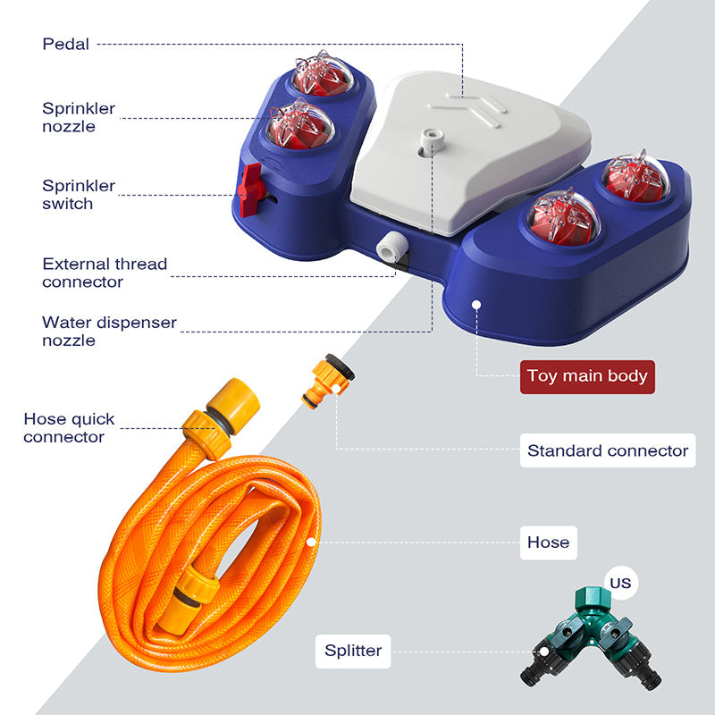 Interactive sprinkler: The Outdoor Dog Water Dispenser is a fun and practical hydration solution for your pet. Designed as an interactive sprinkler toy, it activates when your dog presses the pedal with its paw, instantly spraying water upwards for refreshing play and drinking. The sprinkler nozzle has a diameter of 0.28 inches, ensuring a controlled and enjoyable water flow. Perfect for outdoor use, this water dispenser keeps your dog entertained while providing fresh water on demand, making it ideal for hot days and active pets.