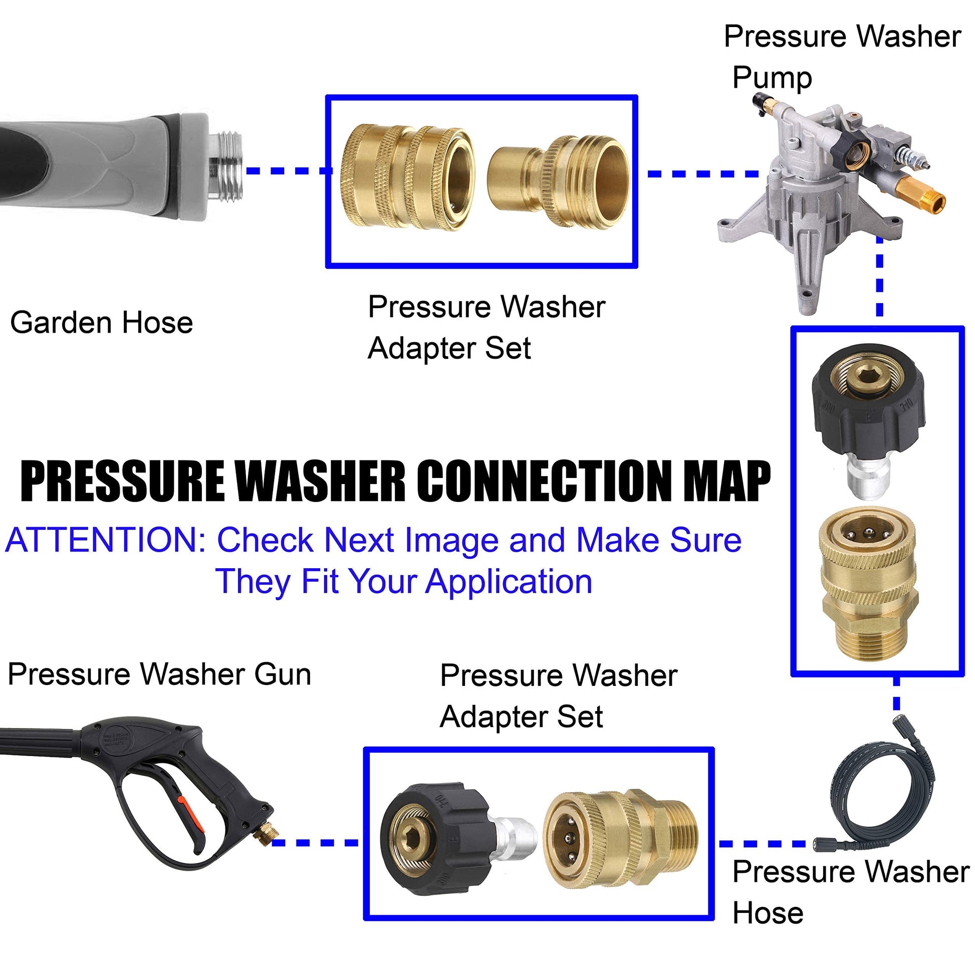 Perfect compatibility: The Pressure Washer Adapter Set is designed to provide a seamless connection between your pressure washer pump, garden hose, pressure washer gun, and pressure washer hose. This adapter set ensures compatibility across various models, allowing you to connect all the essential components of your pressure washer setup.