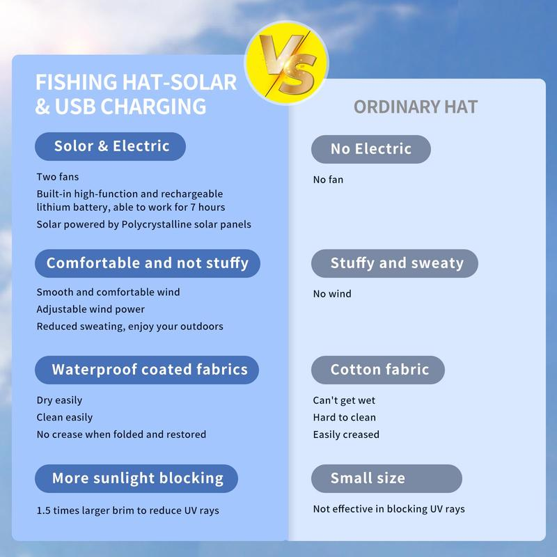 Sakerplus Solar Fan Outdoor Hat with Dual Power Supply