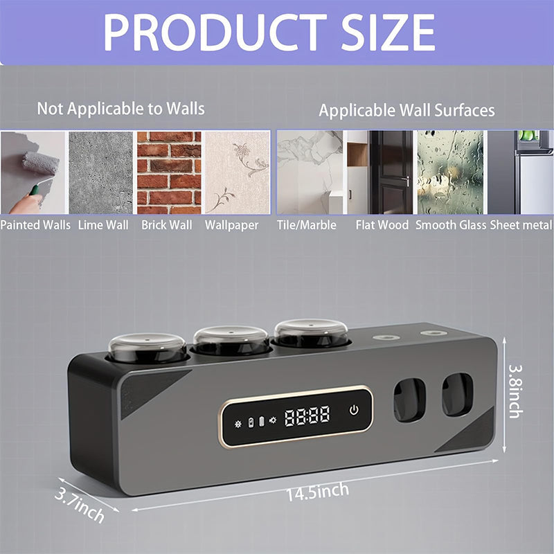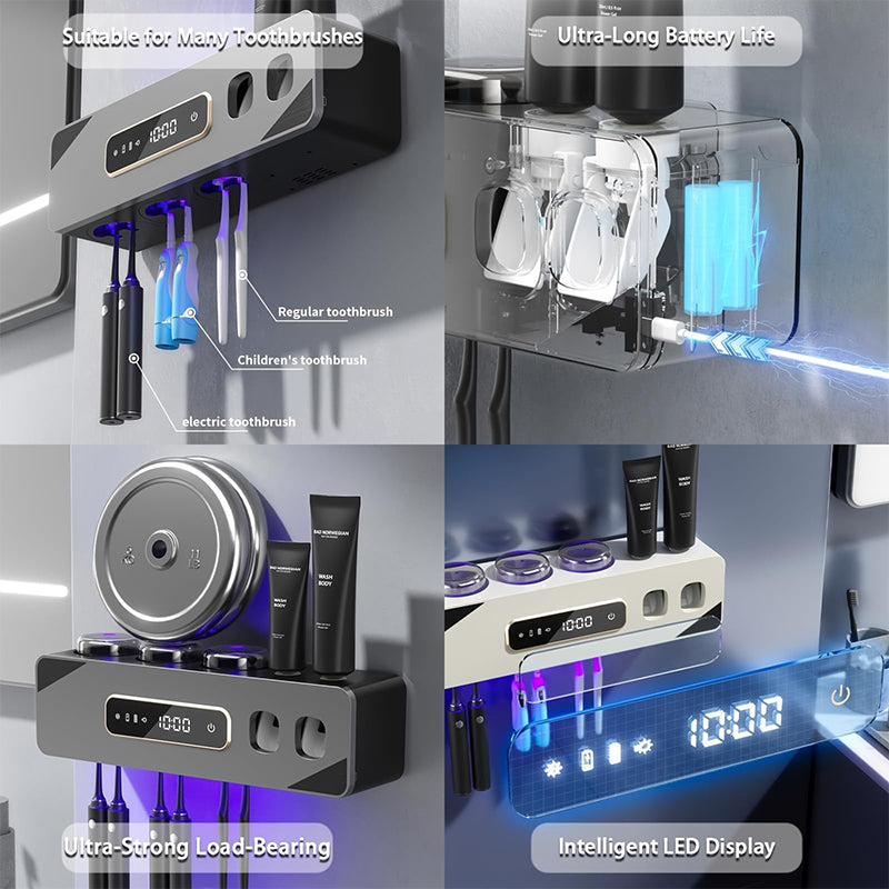 All-in-one: Designed to fit many types of toothbrushes, including regular, children’s, and electric toothbrushes, this wall-mounted toothbrush holder is perfect for the whole family. With ultra-strong load-bearing capacity, it stays firmly mounted, even when fully loaded. The intelligent LED display makes operation clear and convenient. Enjoy peace of mind with a 1-month battery life on a single charge — reliable and low-maintenance. Upgrade your bathroom with technology that’s smart, durable, and family-friendly.