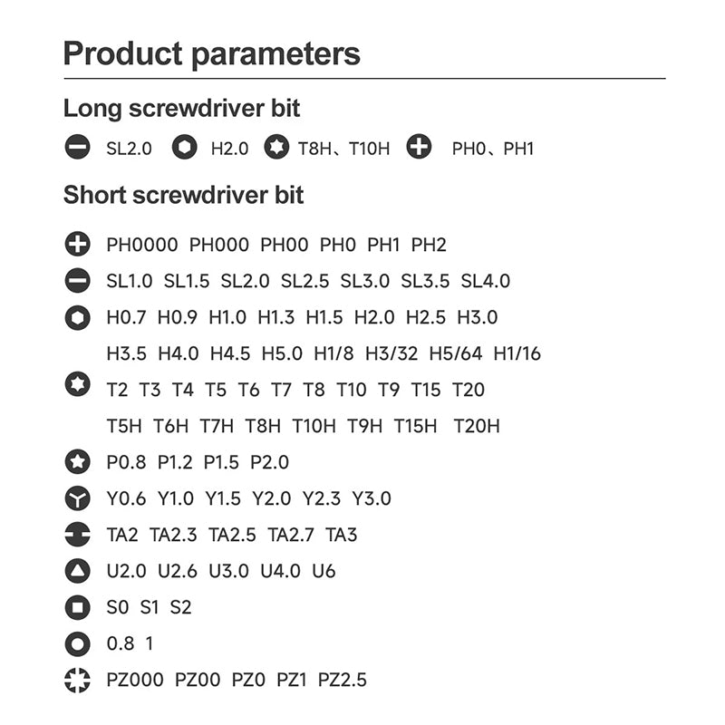 Bits: The kit comes with high-quality, durable bits that cover screws of mainstream devices. Each bit is crafted for accuracy and long-lasting use, ensuring smooth operation and minimal wear.