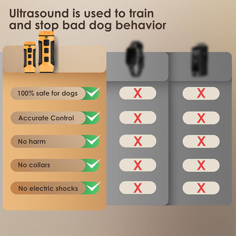 Ultrasonic Dog Training and Deterrent Device (21kHz - 32kHz): Effectively captures your dog's attention, corrects undesirable behaviors, and helps deter annoying barking from neighboring dogs, all with inaudible sound waves that are safe, humane, and non-stressful.