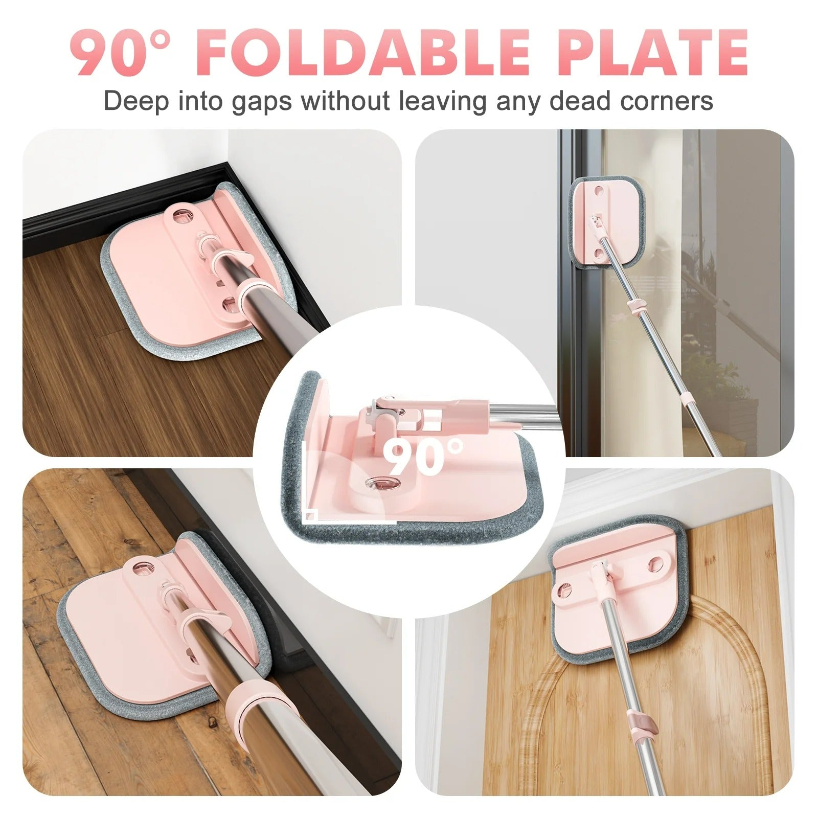360° rotatable mop head & 90° folding design: Easily cleans hard-to-reach areas like corners, baseboards, and narrow spaces with flexible movement.