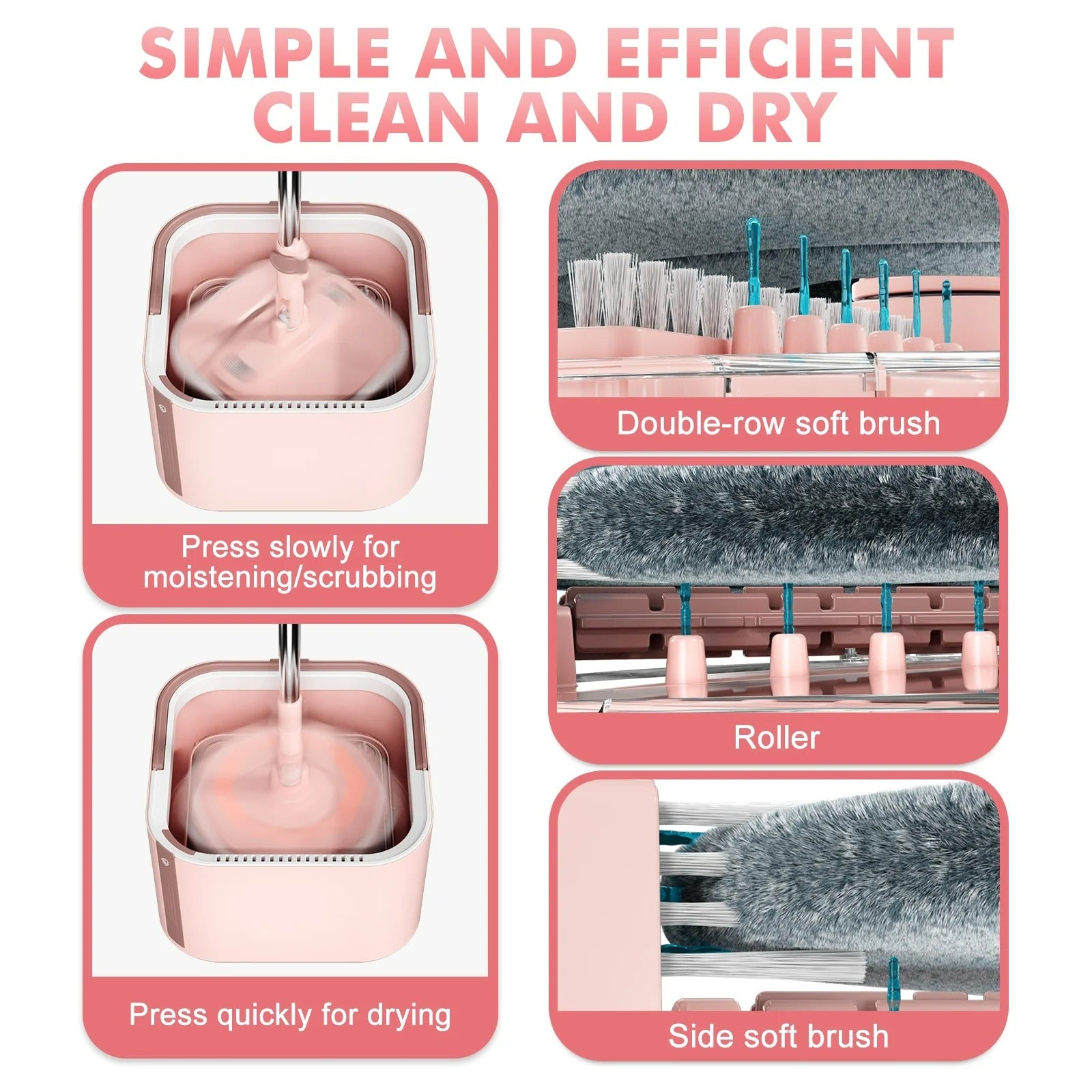 Upgraded mop cleaning system: Fluffy brush on the bucket lid and an extra small brush help clean the mop head more effectively-no hand contact with dirt needed.
