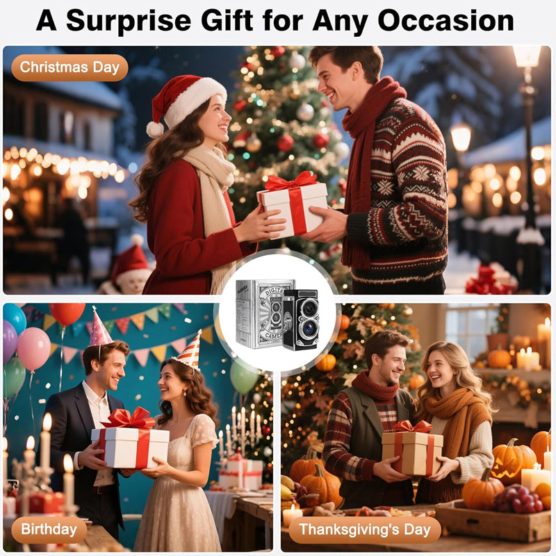 Retro TLR style camera: Tired of the same old digital photos? Craving a unique perspective on the world? This retro TLR style camera combines classic charm with a fresh photography experience! With its manual joystick operation, you can effortlessly capture life's moments in just 8 seconds, creating memories that are truly your own. Images are no longer just still pictures—they become vivid stories that bring every moment to life
