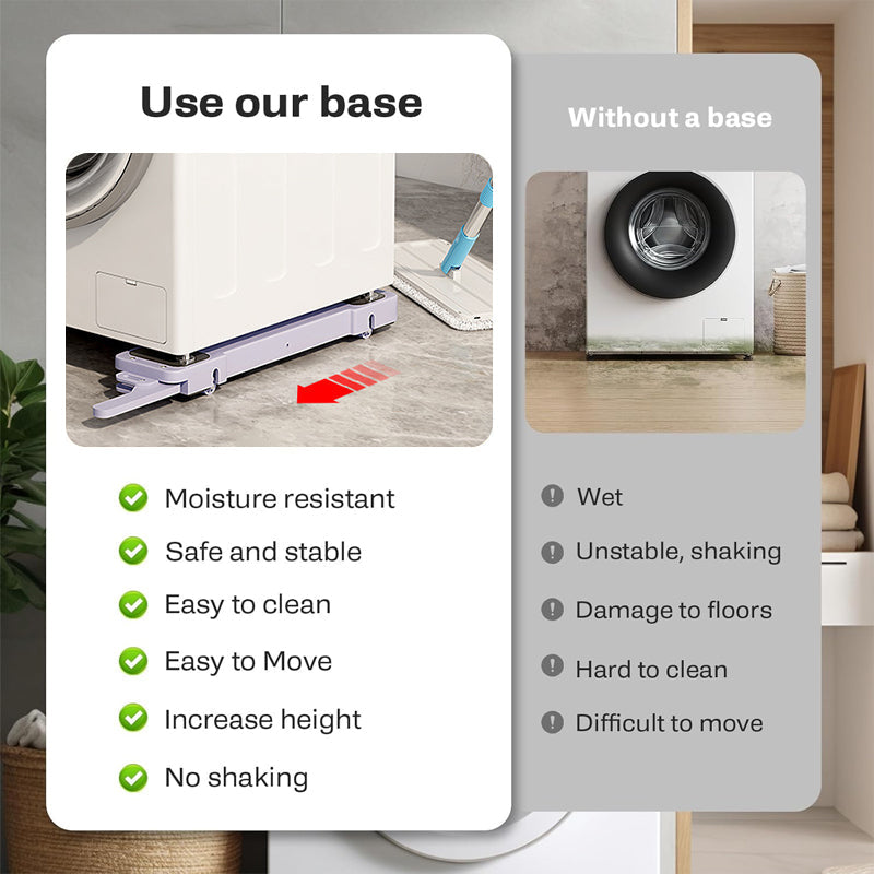 Increased height & moisture protection: Equipped with non-slip pads and fixed square molds, this design raises appliances off the ground, ensuring ventilation to prevent water accumulation and rust, thereby extending their lifespan. Perfect for washing machines, dryers, refrigerators, and other large appliances and furniture.