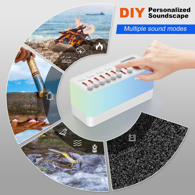 Customizable sound options: Offers 8 unique, non-looping sleep sounds like rain and ocean, each with independent volume control for 256 soothing combinations.q
