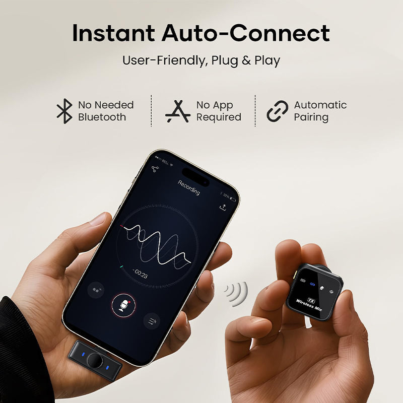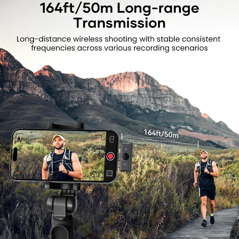 Portable wireless microphone for iPhone: Designed for portability, this small and lightweight lapel microphone wireless can be handheld, clipped to clothing, or magnetically attached for convenient use in any environment. The iPhone microphone offers stable transmission within a range of 164 ft in open areas. Ideal for content creators, TikTokers, and YouTubers, it provides stable, low-latency recording for both indoor and outdoor use, ensuring the best experience for long-distance recording.