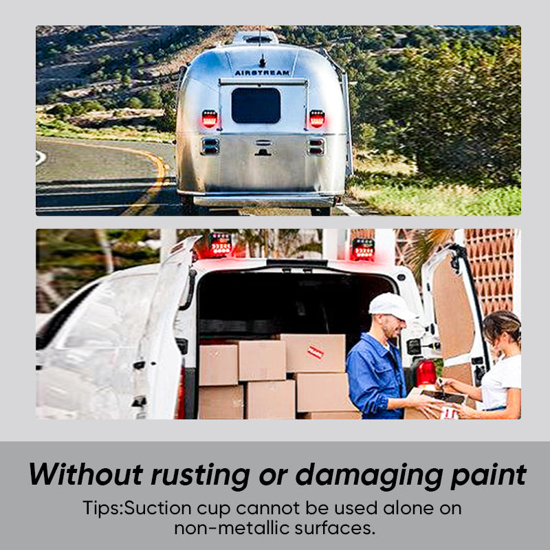 Adjustable magnetic mount: Easily mountable on the rear or roof top of the truck's metal surface. The rubber-coated, adjustable magnetic base prevents scratches and ensures a firm grip during travel, tested up to 50 mph without detachment.